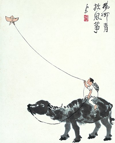 此后,隨著學(xué)識(shí)的增加,關(guān)于牛的意象不斷拓展。“天蒼蒼,野茫茫。風(fēng)吹草低見(jiàn)牛羊”,這是南北朝時(shí)期的《敕勒歌》,廣袤的草原為牛提供了開(kāi)闊的活動(dòng)空間與豐贍的食物,多么安詳自在的景象呀!“隔岸橫州十里青,黃牛無(wú)數(shù)放春晴。船行非與牛相背,何事黃牛卻倒行。”這是楊萬(wàn)里的詩(shī)作《過(guò)大皋渡》,黃牛不會(huì)倒行,而是船行河中水流太急,生活的趣味里悄然透著淡淡的哲理。“門外一溪清見(jiàn)底,老翁牽牛飲溪水。溪清喜不污牛腹,豈畏踐霜寒墮趾。”這是陸游詩(shī)作《飲牛歌》,用老翁飲牛的潔凈溪水,比襯自我的廉潔之志。往后看更見(jiàn)意趣,“牛能生犢我有孫,世世相從老故園”,借助牛繁衍生犢,渲染門庭興旺,而且世代情系故園,真是不忘初心呀!“草滿池塘水滿陂,山銜落日浸寒漪。牧童歸去橫牛背,短笛無(wú)腔信口吹。”這是宋代雷震的詩(shī)作《村晚》,鄉(xiāng)村的黃昏恬靜怡和,靜在草叢,靜在池塘,靜在倒映于水面的“山銜落日”,這未免有點(diǎn)沉寂吧?打破沉寂的是牛,是趨步前行的牛,還有牛背上飛出的短笛聲,這聲音毫無(wú)約束,信口吹響,自由飛揚(yáng)。