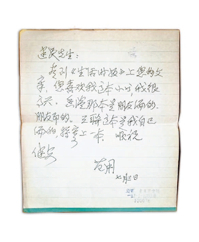 《生活時(shí)報(bào)》上的拙稿,是先在網(wǎng)上讀到,好幾天后才接到樣報(bào)的。正考慮著是否復(fù)印給先生(因怕給您添麻煩),便收到您的大札及三聯(lián)版的《我愛(ài)穆源》,喜不自勝。近幾天大暑,常常躺在席上翻讀《穆源》,很快又讀了一遍,雖似乎輕松但收益卻不少。我們最后留在生命記憶里的,不正是這些最純粹、率直的東西嗎?這也許正是它的價(jià)值,也許是人們復(fù)讀《穆源》的自然沖動(dòng)。再次致謝!