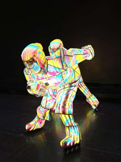 “未來冰球隊”演員肖遙和隊友身著表演服訓(xùn)練。受訪者供圖
