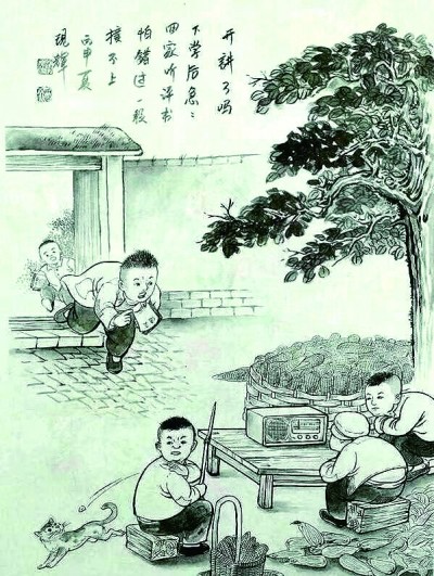 劉現(xiàn)輝的一套四冊繪畫作品《童年那些事兒》(花山文藝出版社出版),就是一次目光穿越時(shí)光阻隔,對童年和故鄉(xiāng)的深情佇望。經(jīng)由長久而專注的凝視,一縷縷游絲般輕淡的鄉(xiāng)思,逐漸擴(kuò)展匯聚成一種濃郁的故土深情,仿佛滿天云錦,在靈魂的天空閃現(xiàn)著動(dòng)人的光華。