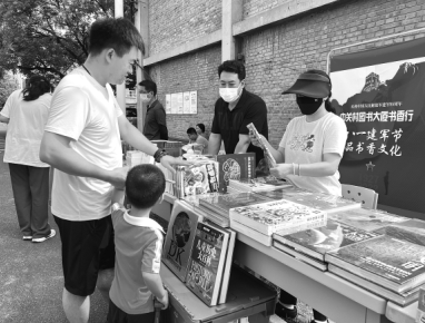 中關(guān)村圖書(shū)大廈攜手西郊機(jī)場(chǎng)居民委員會(huì)走進(jìn)西郊機(jī)場(chǎng)家屬區(qū),開(kāi)展“八一建軍節(jié) 品書(shū)香文化”主題宣傳活動(dòng)。