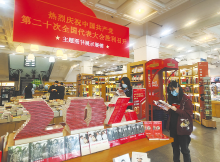 全國各地實體書店開設(shè)專題展臺——二十大主題圖書潤人心促奮進