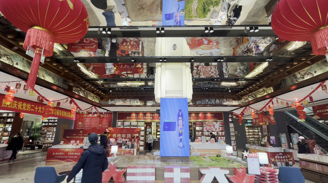 走進(jìn)甘肅省新華書店西北書城,這里裝扮一新,高高掛起的大紅燈籠烘托出濃濃的年味,敦煌文化元素的有機(jī)融入,讓中華優(yōu)秀傳統(tǒng)文化在這里流光溢彩。書城一樓的主題出版物展區(qū),勉勵(lì)人們熱愛讀書的標(biāo)語豁然醒目 。