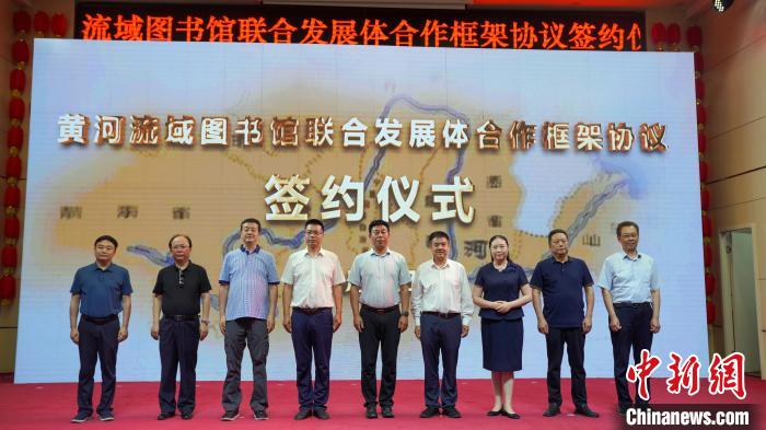 黃河流域圖書(shū)館聯(lián)合發(fā)展體,是在陜西省文化和旅游廳的指導(dǎo)下,由陜西省圖書(shū)館倡議發(fā)起,聯(lián)合青海省圖書(shū)館、四川省圖書(shū)館、甘肅省圖書(shū)館、寧夏圖書(shū)館、內(nèi)蒙古自治區(qū)圖書(shū)館、山西省圖書(shū)館、河南省圖書(shū)館、山東省圖書(shū)館共同組建?;顒?dòng)現(xiàn)場(chǎng),沿黃九省(區(qū))圖書(shū)館館長(zhǎng)共同簽署了《黃河流域圖書(shū)館聯(lián)合發(fā)展體合作框架協(xié)議》,黃河流域圖書(shū)館聯(lián)合發(fā)展體正式成立。