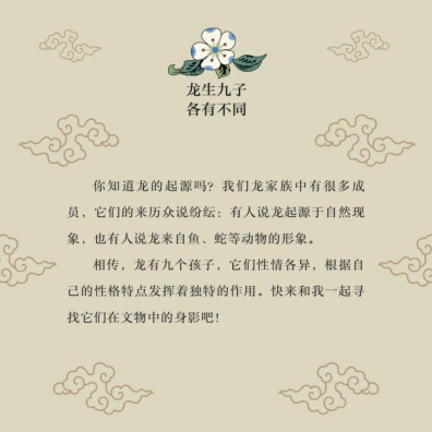 想到這,帶著滿滿自信的如意背起時(shí)光寶盒,興奮地去找其他小朋友,要給大家一起分享關(guān)于龍族祖先們與瑰麗國寶的故事……