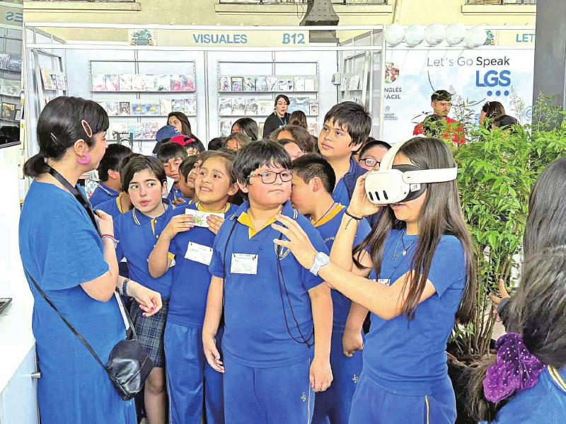 圖為小讀者在書展期間體驗中國展區(qū)內的閱讀“黑科技”。