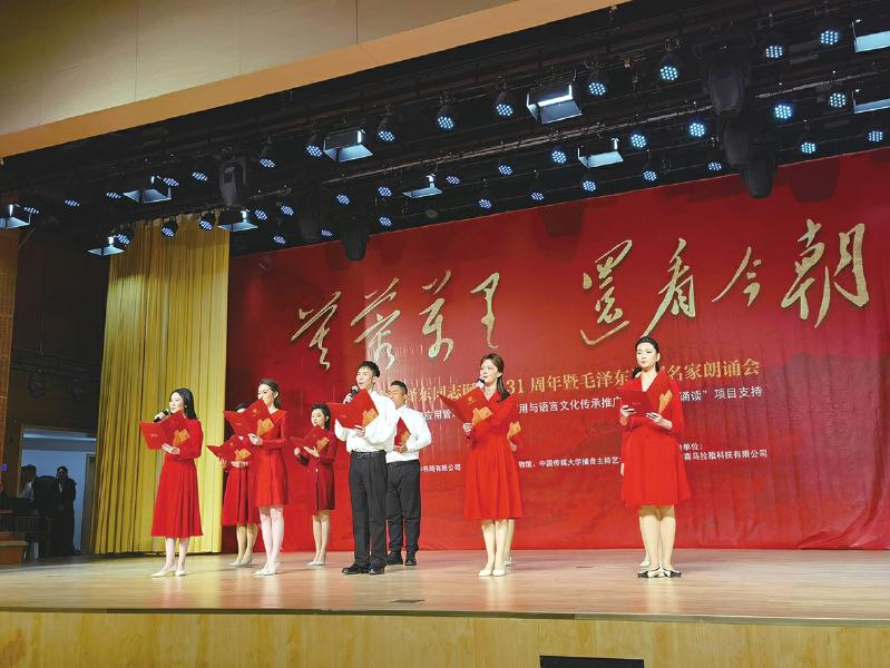 “看萬山紅遍,層林盡染;漫江碧透,百舸爭(zhēng)流。”12月26日下午,在中國(guó)傳媒大學(xué)在校生的誦讀聲中,“芙蓉萬里 還看今朝——紀(jì)念毛澤東同志誕辰131周年暨毛澤東詩詞名家朗誦會(huì)”在首都圖書館拉開帷幕。