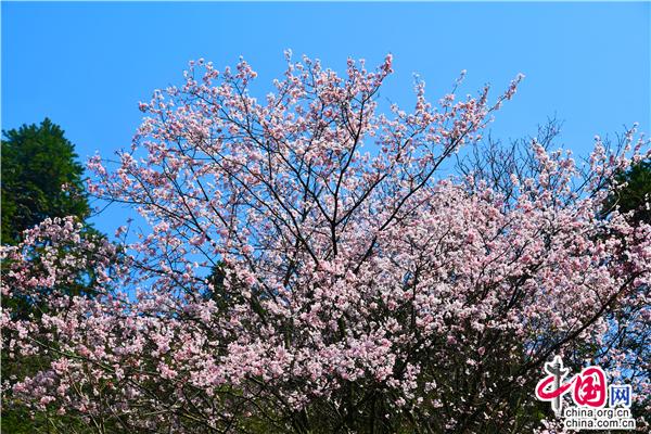 湖南新邵“長(zhǎng)壽村”萬(wàn)畝櫻花怒放 宛若七彩水墨畫(huà)