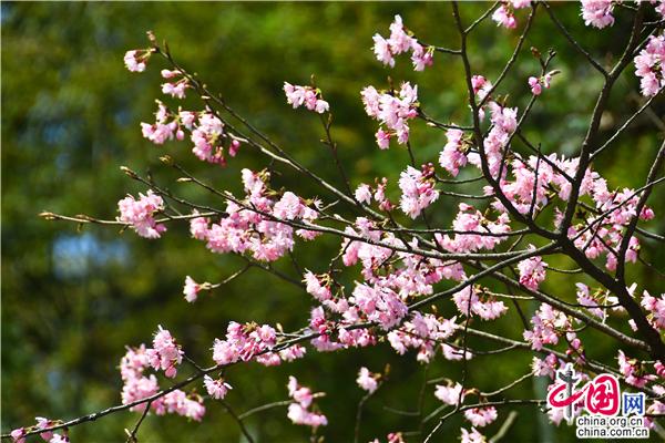 【點(diǎn)睛】沿著蜿蜒的旅游公路,兩旁海拔600多米的山坡上開(kāi)滿了櫻花,一簇簇櫻花投印在蒼翠山麓與柳綠間,潔白的、粉色的、玫紅的花朵,迎風(fēng)搖曳,儼然一副七彩水墨畫(huà)。