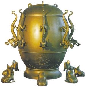 從此,張衡在天文學(xué)和星象體系方面的聰明才智如噴發(fā)的涌泉一發(fā)不可收:候風(fēng)儀、指南針、記里程鼓車、會(huì)飛的木雕等等,一個(gè)個(gè)科學(xué)發(fā)明成果相繼推出,并在公元132年研制出了地動(dòng)儀。地動(dòng)儀是世界上最早的觀測(cè)地震的儀器,它比歐洲創(chuàng)造類似的地動(dòng)儀早1700多年。