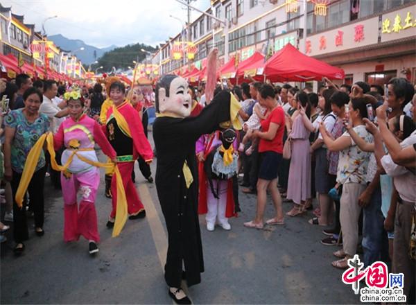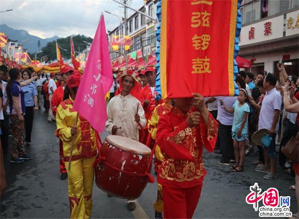 小鎮(zhèn)很熱鬧。小鎮(zhèn)現(xiàn)已入駐了十幾家大型連鎖超市,500多家賓館飯店,300多家購物店。每到雙休日,操著各色口音的四海賓客在街上蹓跶、徜徉,或在超市購物店里選購精美的土特產(chǎn),或在酒店里品嘗著山珍野味,或在KTV里痛快豪嗓,或圍著篝火歡歌勁舞,有的干脆就光著膀子在露天的小吊鍋前劃拳行令,恣意灑脫,好不愜意。每年農(nóng)歷六月初六,天堂寨都要舉辦隆重的天貺節(jié),天堂寨鎮(zhèn)政府門前的一公里主街道兩邊擺起了長龍似的紅色帳篷,“百家吊鍋宴”成為中外游客免費(fèi)品嘗天堂寨美食的饕餮盛宴。人們一邊喝著小吊美酒,吃著山珍美味,一邊欣賞著穿街而過的威風(fēng)鑼鼓、騰龍舞獅、儺戲花船、獨(dú)輪推美女、花棍打癡郎等不斷推陳出新的民俗風(fēng)情表演。酒足飯飽之后,再到政府廣場觀看精彩紛呈的文藝節(jié)目。一時間,人山人海,把一個千米“長街”擠得水泄不通;歡聲笑語,把一個深山小鎮(zhèn)匯成了歡樂的海洋……