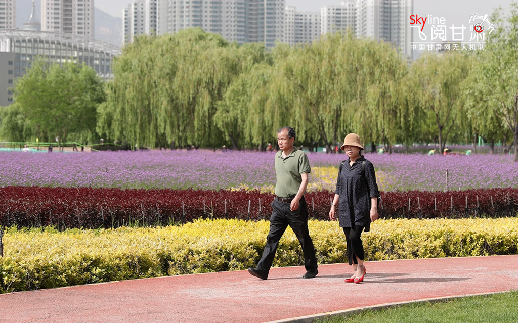 從高空看花海,不加濾鏡的蘭州自帶美顏效果,由于蘭州地形狹長,土地緊張,一直卻少一片可以讓市民徜徉其中的花海,2019年,蘭州馬拉松公園首次嘗試大規(guī)模種植花卉,形成花海規(guī)模,讓黃河穿城而過的蘭州有了一段浪漫花堤。