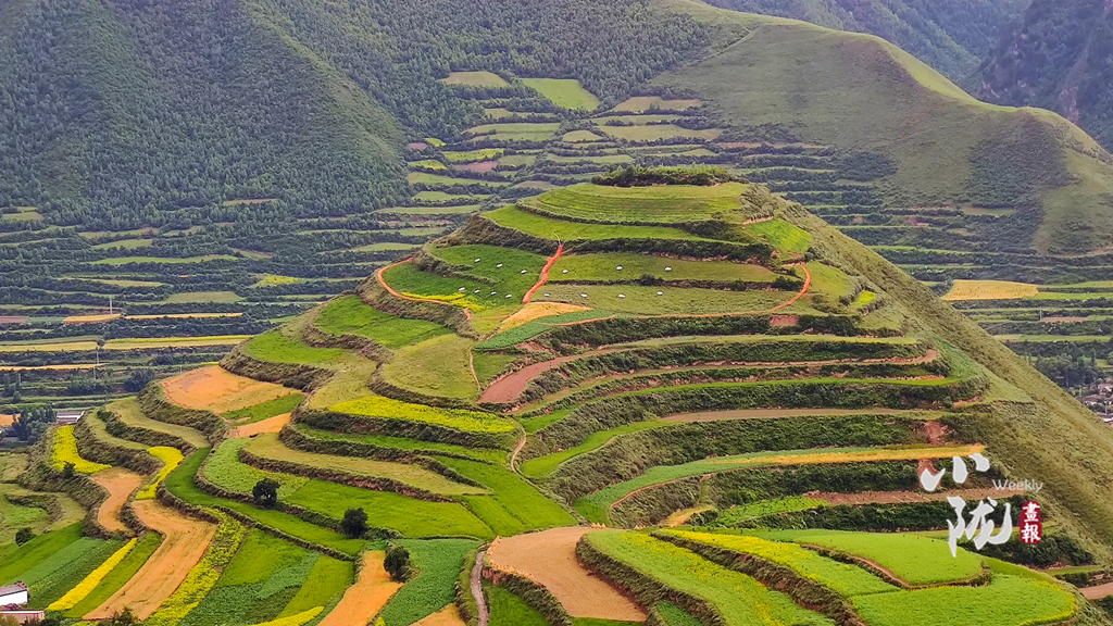 行走在冶力關(guān),目之所及皆是美景,在半山腰上向遠(yuǎn)處眺望,只見(jiàn)遠(yuǎn)山層巒疊翠,云蒸霞蔚,梯田綠黃交錯(cuò),如詩(shī)如畫。