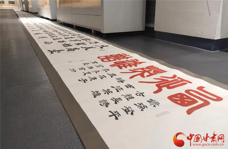 中國甘肅網(wǎng)8月23日訊 (本網(wǎng)記者 張?zhí)m琴)為了“講好西路軍的故事,傳承好紅色基因”,銘記革命英烈的英雄事跡和英勇獻(xiàn)身的革命精神。近日,張掖高臺(tái)縣展開了形式多樣的主題活動(dòng),其中在紅色主題文藝精品展上,書法作品百米長(zhǎng)卷《西征英雄譜》再現(xiàn)了紅西路軍將士不畏艱險(xiǎn)、浴血奮戰(zhàn)的悲壯歷史場(chǎng)景受到好評(píng)。