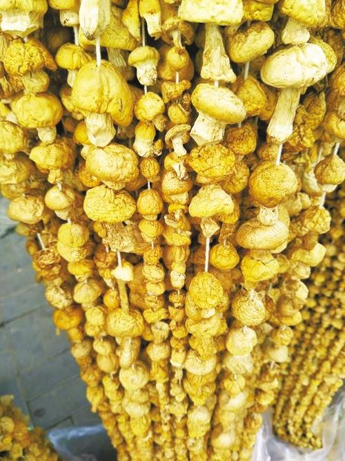 在張掖的土特產(chǎn)品店有售賣晾干的祁連山野蘑菇——出產(chǎn)于祁連山海拔1700至3600米左右的平山坡一帶無污染地區(qū),氣味純正、芳美可口,備受人們的青睞。于是在張掖一帶,便多了一種美食——野蘑菇面片。有幸在當?shù)匾患业昶穱L一番,鮮美無比。