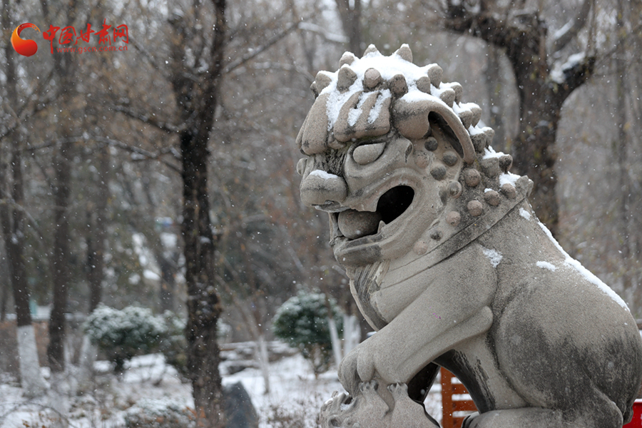 雪中的石獅在威嚴中多了幾分俏皮