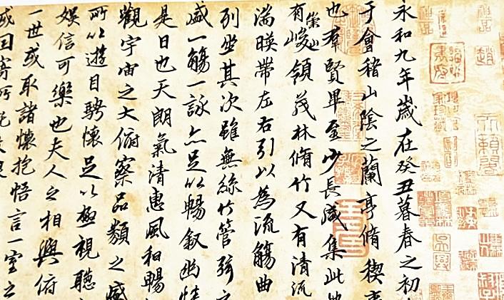 何為不朽?不朽在于引起后代的共鳴,于后人幾成緬想。那遠(yuǎn)去的曾經(jīng),在身邊現(xiàn)實(shí)中已經(jīng)難以找尋,個(gè)體的記憶怎樣傳承歷史厚重,也許這也是一種最好方式。那張涂抹得一塌糊涂的紙,一千多年來,從沒有消停過,穿越時(shí)空,無數(shù)人一棒接過一棒,在手中傳承,揣摸,膜頂,令無數(shù)書法愛好者追慕效法。很多人正是通過觀摩學(xué)習(xí)《蘭亭序》,愛上書法藝術(shù),進(jìn)而走入這門高雅的書法藝術(shù)殿堂。