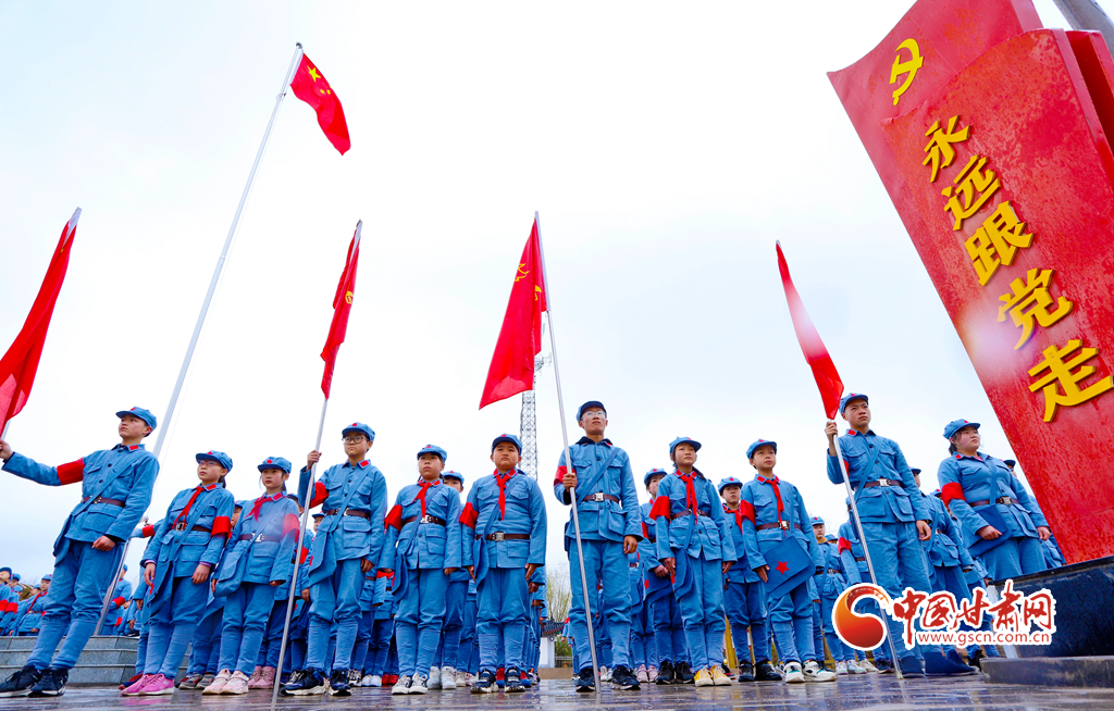 3月31日,甘肅張掖甘州區(qū)龍渠鄉(xiāng)中心學校的300多名師生宣誓永遠跟黨走。