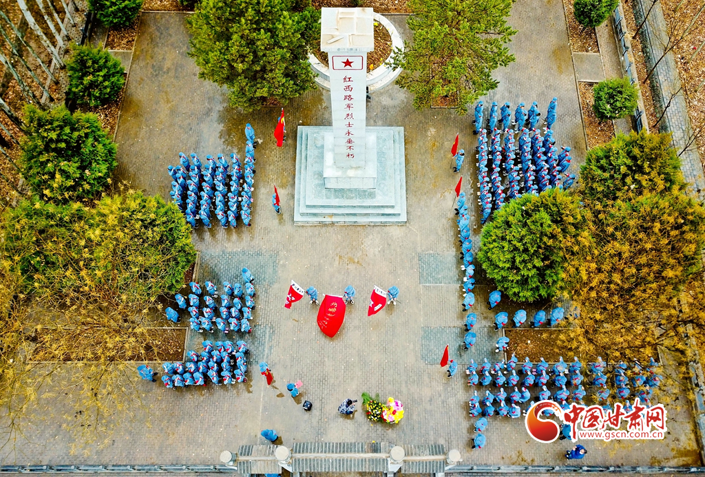 3月31日,甘肅張掖甘州區(qū)龍渠鄉(xiāng)中心學校的300多名師生在龍渠烈士陵園緬懷革命先烈。