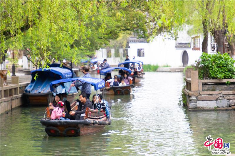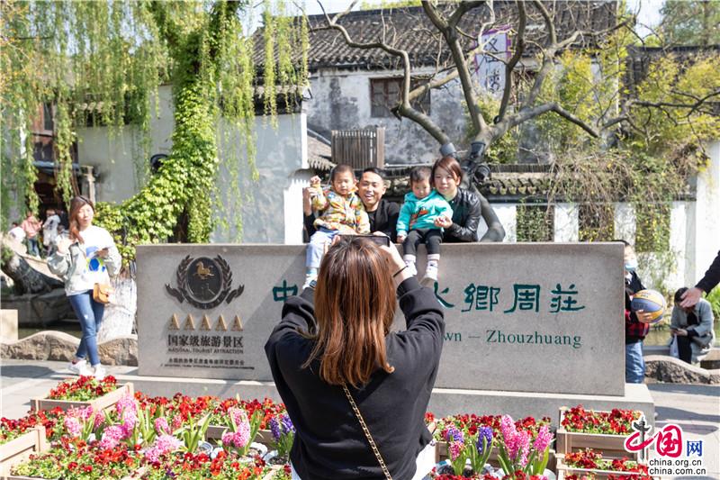 清明小長假前兩日,周莊景區(qū)迎來一批批尋春而來的游客,漫步古鎮(zhèn)覓春韻,踏青田園賞花海。