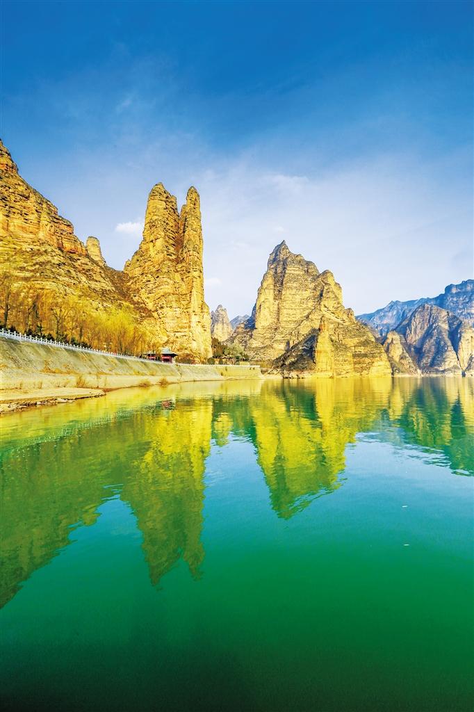 炳靈寺石窟前的姊妹峰。本版照片均為首席記者 田蹊 攝