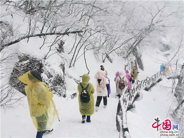 原標(biāo)題:安徽黃山又又又降雪啦!驚羨游客 催熱賞雪游