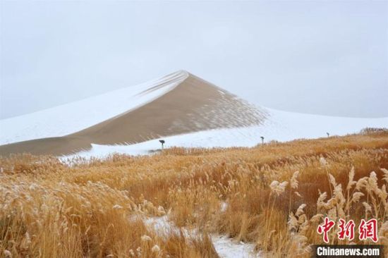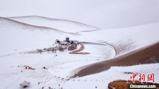 2月17日,甘肅敦煌迎來(lái)降雪天氣,大漠山川被皚皚白雪覆蓋,像一幅幅清秀淡雅的水墨山水畫(huà)。敦煌著名風(fēng)景區(qū)——鳴沙山月牙泉景區(qū)吸引游客前來(lái)觀(guān)賞難得一見(jiàn)的大漠雪景。這次降雪的特點(diǎn)是降雪量大,但氣溫并不是很低,游人盡情體驗(yàn)“沙雪交融”的絲路盛景。(王斌銀 張曉亮)