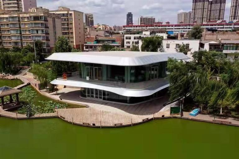 這座公園被譽為“鑲嵌在黃河邊上的綠寶石”,以水景作為核心景觀,在水與島、水與綠之間架設(shè)形式各異的木橋,形成全園的景觀骨架,并以保護生態(tài)為主要宗旨,使公園內(nèi)植物、水鳥以及黃河水域達到生態(tài)平衡。