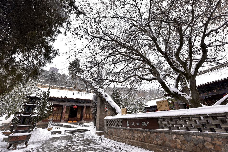 夏日炎炎,站在凈土寺觀音殿的高階之上,一聲鐘罄聲響起,仿佛震醒了山風(fēng),松濤幽碧隨之蕩漾,似是滌蕩了人間心塵,五蓮峰拖起紅墻青翠,中國古典色彩之美盡顯灑脫。雪落禪院,更是青松點(diǎn)翠,斗拱擎雪,莊嚴(yán)而不失華麗,踏雪只為聽靜中天籟聲。