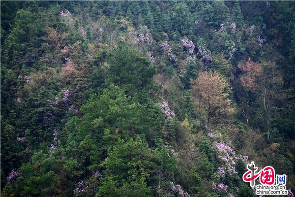 春天的穿巖山國家森林公園,漫山花開,層林盡染春色。這時候的野櫻花、野杜鵑、野映山紅竟相綻放,條條游步道宛如一條條花帶,帶著生機勃勃和滿天飄舞的芳香,讓游人心曠神怡。走在一條條蜿蜒的棧道,鮮氧環(huán)伺,鼻息間盡是春風吹來的清新氣息。這里人文歷史與自然美景交融,既可在蜿蜒的茶馬古道,重走紅軍路,感受偉大的革命精神,又可在越河而建、凌空百丈的5D玻璃橋體驗漫步云端的驚險刺激,還可在寧靜愜意的云端古村落,感受淳樸的民風和歷史悠長的農耕文化奇葩。早晨的日出云海,中午的藍圖白云,下午的燦爛夕陽,鮮花與藍天、彩霞相映,讓人流連忘返。漫山遍野的綠意間,成團櫻花、杜鵑、映山紅等夾雜其中,或粉紅或雪白,或紫色或丹紅,密密匝匝開滿枝頭。由于雪峰山景區(qū)的落差較高,從300米到1500米,櫻花期、杜鵑花期、映山紅花期交錯,成梯級往山背梯田景區(qū)、虎形山大花瑤綻放開來,讓賞花期能長達2、3個月之久。