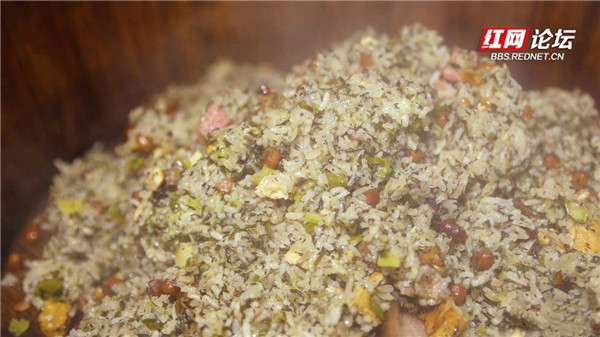 若是將鮮嫩的青蒿用石臼搗碎小炒,再與本地特產香糯米、切成小顆粒的臘肉一同上鍋蒸,就做成了湘西社飯。每逢春季社日,湘西地區(qū)農民都要制作社飯祭祀土地神,祈求年景順利、五谷豐登、家運祥和,如今,亦成為人們“嘗春”的佳品。