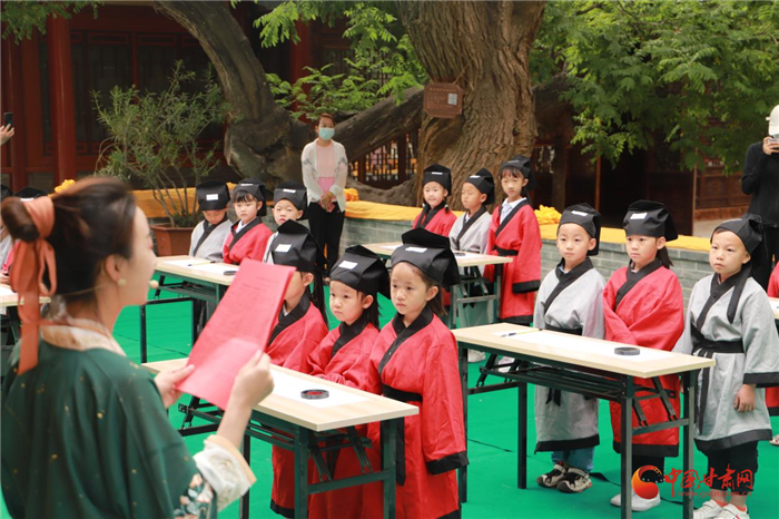 活動(dòng)二,“開(kāi)筆啟蒙 詩(shī)禮少年”開(kāi)筆禮活動(dòng)成功舉辦??鬃釉唬?ldquo;不學(xué)禮,無(wú)以立”,“開(kāi)筆禮”古稱“破蒙”,為人生“四禮”之一,也是少兒開(kāi)始識(shí)字習(xí)禮的一種啟蒙教育形式,寄托了對(duì)孩子成長(zhǎng)的美好企盼。少年智則國(guó)智,少年強(qiáng)則國(guó)強(qiáng),在文廟舉辦“開(kāi)筆禮”,就是為了傳承中華優(yōu)秀傳統(tǒng),增強(qiáng)學(xué)子文化自信,激發(fā)學(xué)習(xí)熱情,為中華民族的偉大復(fù)興刻苦學(xué)習(xí),努力奮斗。