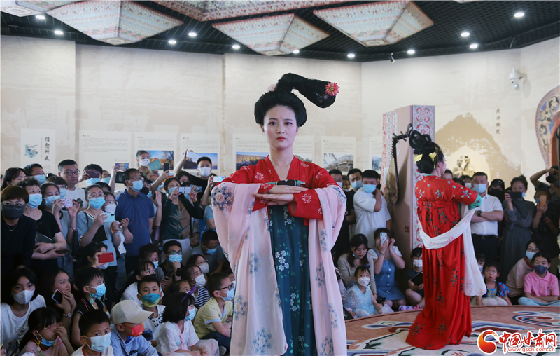 中國(guó)甘肅網(wǎng)6月11日訊(本網(wǎng)記者 程健 宋芳科)6月11日上午,值文化和自然遺產(chǎn)日到來(lái)之際,敦煌文化研究院在蘭州分院敦煌藝術(shù)館舉辦了“時(shí)代共進(jìn)、人民共享”主題展,通過(guò)虛實(shí)融合敦煌石窟體驗(yàn)、敦煌服飾展演、文創(chuàng)產(chǎn)品展示等,向廣大市民群眾全方位呈現(xiàn)了深厚的敦煌文化與莫高窟文化遺產(chǎn)。當(dāng)天的活動(dòng),中國(guó)甘肅網(wǎng)全程進(jìn)行了網(wǎng)絡(luò)直播。
