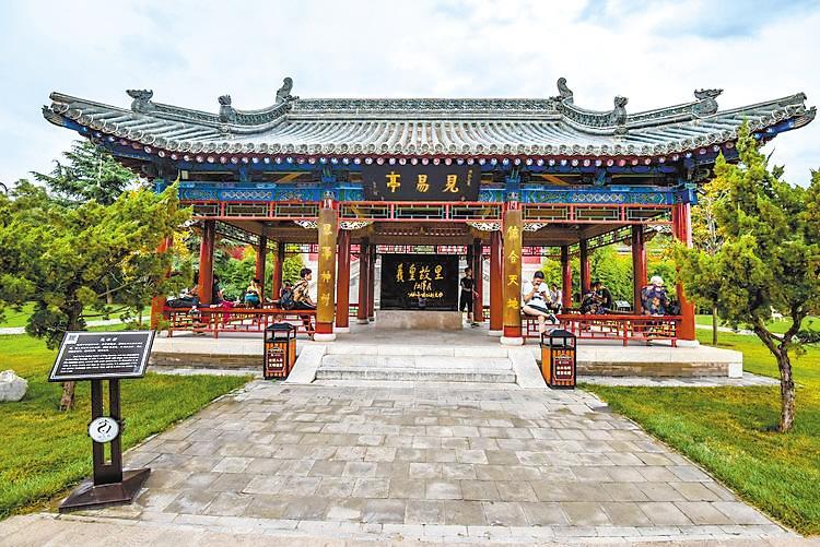 太極殿后是后花園,即伏羲廟第四院。這也真正體現(xiàn)了宮廷式建筑“前有宮,次有寢,后園林”的規(guī)制。“見易亭”居中,坐落在綠茸茸的大草坪上。園內(nèi)植木育花,壘石筑山,碧草修竹,處處風景如畫。