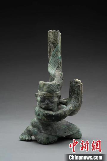 “它(扭頭跪坐人像)之前一直被象牙壓著,象牙提取后還有象牙渣、灰燼土黏在上面,而且附著有銅銹,臉部輪廓不清楚,加上之前從來沒有見過這樣‘怒發(fā)沖冠’的人像,所以我們最初還誤以為這是一只‘青銅神鳥’。”在三星堆4號(hào)祭祀坑發(fā)掘負(fù)責(zé)人許丹陽的記憶中,從看到一抹銅綠到展露真容,考古工作者共花費(fèi)了超過一個(gè)月的時(shí)間才完成了對(duì)第一件扭頭跪坐人像的認(rèn)識(shí)。