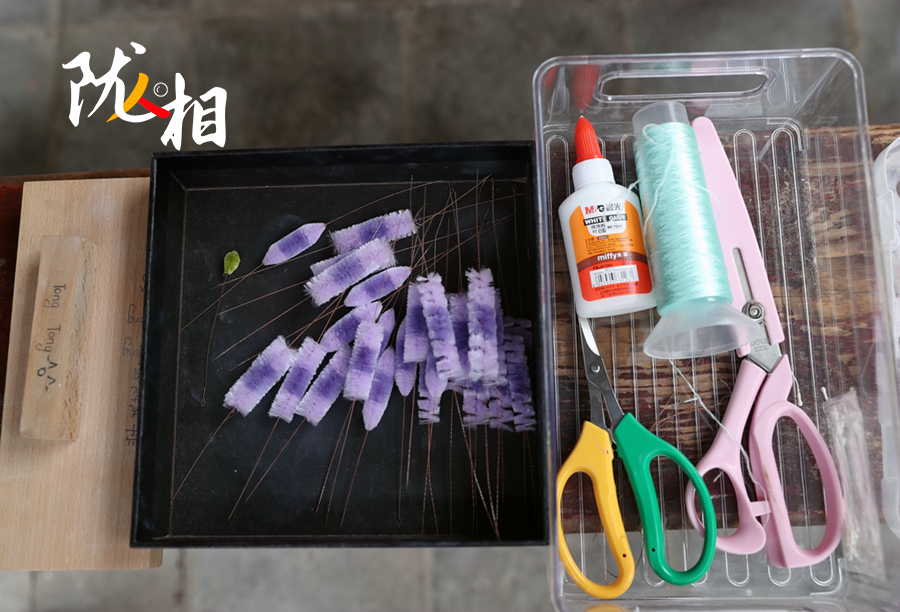 排線、栓銅絲、裁剪寬度、勾挑搓絲、打尖、傳花,每一個制作過程都需要耐心,制作一朵簪花少說也要一周時間。對于宗怡彤來說,學(xué)會簪花,也就學(xué)會了靜下心來面對一切,在沉浸的時光,心無旁騖,才能享受最終的賞心悅目。