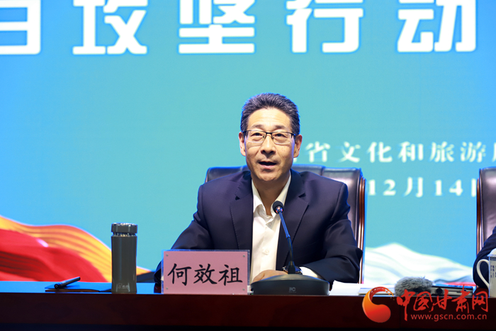 中國甘肅網(wǎng)12月14日訊 (本網(wǎng)記者 張?zhí)m琴 文/圖)14日上午,甘肅省文旅廳召開“文化進萬家 旅游迎新春”百日攻堅行動啟動大會,向全省文旅系統(tǒng)吹響了復工復產(chǎn)的“動員令”,市場復蘇的“集結號”。省委宣傳部副部長、省文旅廳黨組書記何效祖在蘭州主會場出席并講話,通過視頻會議向各市州文旅部門安排部署工作。