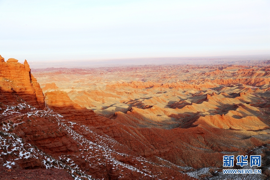 1月1日清晨,甘肅張掖平山湖大峽谷景區(qū)雪后初霽、群峰聳立,在新年朝陽的照耀下更顯雄渾壯觀。新華網(wǎng)發(fā)(成林 攝)