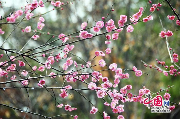 湖南新邵縣委黨校數(shù)千株寒梅迎春綻放。中國網(wǎng)發(fā)