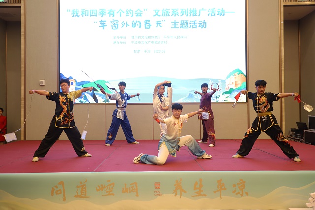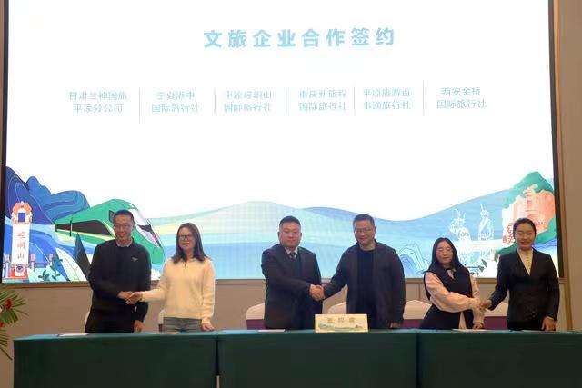 專題推介會上,平涼市文化廣電和旅游局推介了全市文旅資源及“引客入平”系列支持政策,崆峒山、大云寺·王母宮、龍泉寺、云崖寺等重點景區(qū)和涇川橙香瑤池溫泉酒店分別作了主題推介。平涼文旅投公司與西安一帶一路文旅公司、涇川大云恒盛旅游公司與西安黃河國旅、崇信公劉文旅投公司與寶雞春暉旅行社、莊浪關山文旅投公司與寧夏新文化國旅、崆峒山國旅與重慶新旅程國旅、甘肅蘭神國旅平涼分公司與寧夏港中國旅、平涼旅游百事通與西安金橋國旅等14家省內外旅行社分別簽訂“引客入平”客源互送合作協(xié)議。推介環(huán)節(jié)還進行了《神仙留戀的好地方》《崆峒武術魂》《折柳》和《春天的芭蕾》等文藝表演,與會嘉賓參觀了“問道崆峒·養(yǎng)生平涼”文旅形象圖片展、文旅產品市集、非遺技藝展示及網絡直播和非遺文創(chuàng)產品展。甘肅省文旅廳有關處室、各相關市州文旅部門負責人和省內外旅行商、文旅企業(yè)、媒體記者代表,平涼市重點景區(qū)、文旅投公司、文創(chuàng)企業(yè)代表共150余人參加。