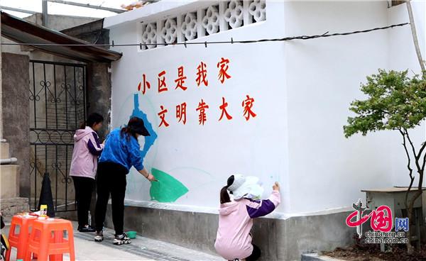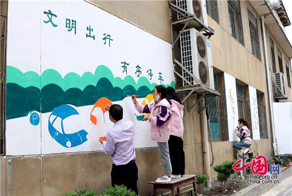 現(xiàn)場(chǎng),大家手持畫筆和顏料板,相互分工協(xié)作,以墻為紙,認(rèn)真細(xì)致的設(shè)計(jì)墻繪內(nèi)容,筆起筆落間,一幅幅栩栩如生、色彩絢麗的城市文明新畫卷躍然墻上。
