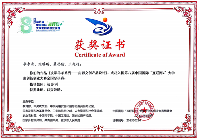 中國甘肅網(wǎng)7月12日訊(西北角·中國甘肅網(wǎng)記者 余守萱 通訊員 郭海霞)近日,從中國國際“互聯(lián)網(wǎng)+”大學(xué)生創(chuàng)新創(chuàng)業(yè)大賽組委會傳出喜訊,由環(huán)縣第二中學(xué)楊蘇洲老師指導(dǎo),學(xué)生李永清、沈琪琪、慕思倩、王超超四人共同創(chuàng)作完成的作品《皮影羊羊系列——皮影文創(chuàng)產(chǎn)品設(shè)計》,成功入圍第八屆中國國際“互聯(lián)網(wǎng)+”大學(xué)生創(chuàng)新創(chuàng)業(yè)大賽全國總決賽。