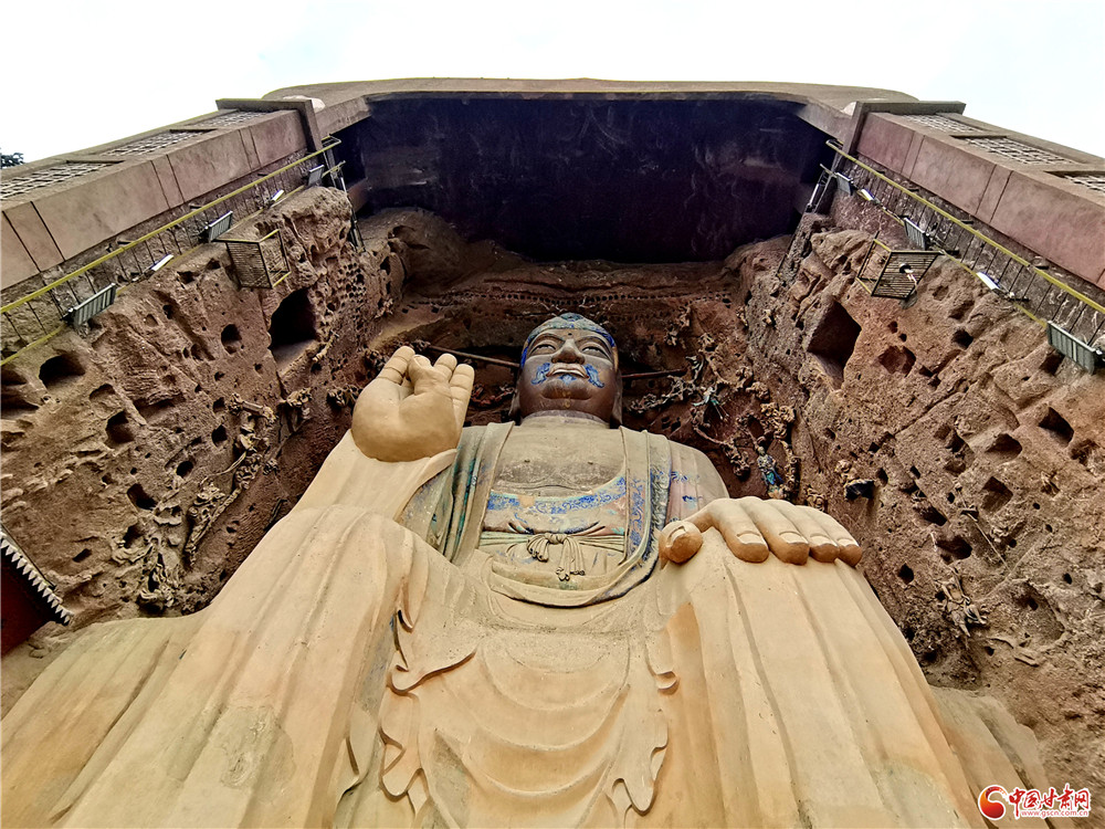 近日,由甘肅省攝影家協(xié)會會員李春拍攝、甘谷縣大像山公園管理所監(jiān)制的【大像山全景圖】(長1.9米)亮相。據(jù)悉,該圖采用全景式拍攝手法,以大像山為中心,左右映帶絲路明珠天門山、天馬山,展現(xiàn)了春天里大像山的旖旎風光,展示了大像山山形酷似一個長長的“山”字,猶如一座筆架,大佛端坐于山的正中,雙眼凝視渭川,山是一尊佛,佛是一座山的絢麗風采。