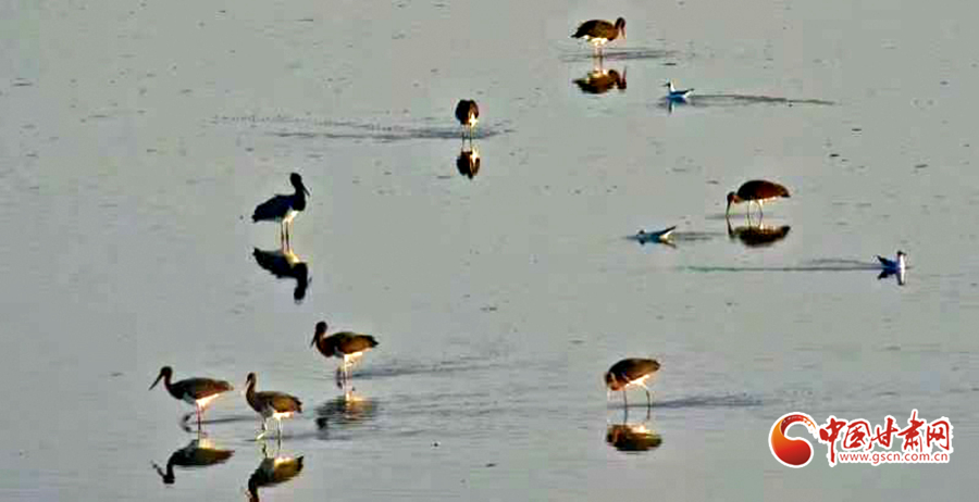 近日,山丹縣濕地保護站工作人員在開展候鳥監(jiān)測工作時發(fā)現14只被稱為“鳥中大熊貓”的黑鸛。