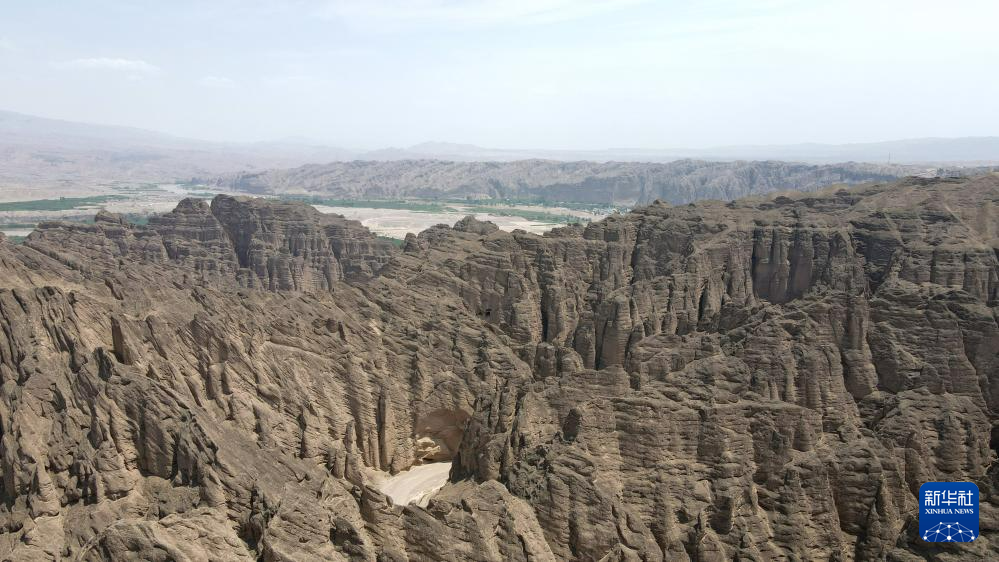 這是位于甘肅省白銀市景泰縣中泉鎮(zhèn)龍灣村的黃河石林景觀。黃河石林千峰競奇、峽谷蜿蜒,與黃河遙相呼應(yīng),形成山環(huán)水轉(zhuǎn)、動(dòng)靜結(jié)合的自然奇觀(7月11日攝,無人機(jī)照片)。新華社記者 陳斌 攝