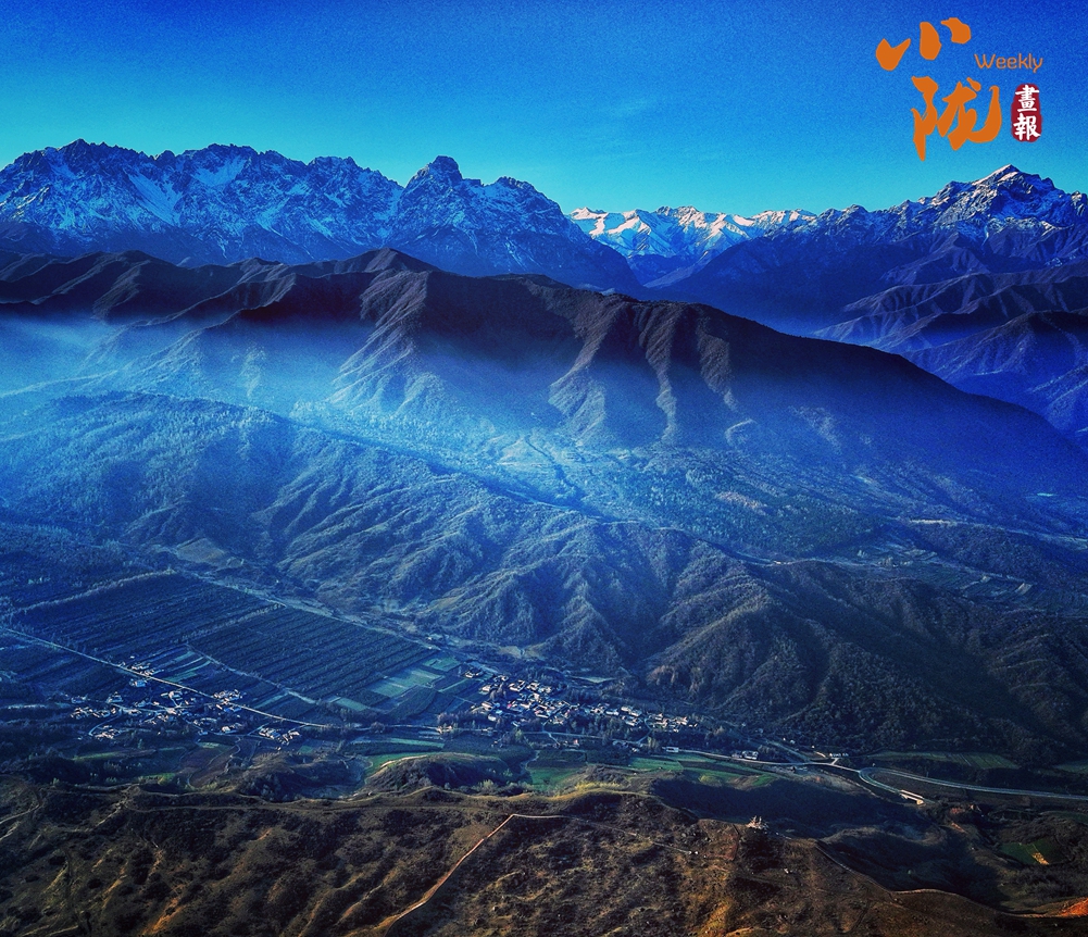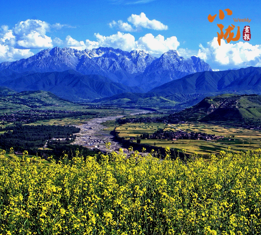 太子山白雪覆蓋,藍天、白云、村莊、綠樹、牛羊、油菜花,盡顯壯美風(fēng)光。