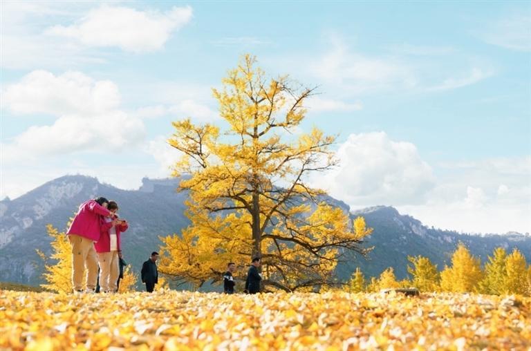 金秋時(shí)節(jié),走進(jìn)徽縣嘉陵鎮(zhèn)田河村,恍若走進(jìn)了金色的仙境。153棵古銀杏樹滿身金黃,一地落葉似“金色地毯”。銀杏樹下,品銀杏茶、吃銀杏果、享銀杏風(fēng)情,美不勝收,吸引眾多游客前來(lái)拍照打卡。如今,美麗風(fēng)景變身“美麗經(jīng)濟(jì)”,當(dāng)?shù)匾劳星赉y杏資源優(yōu)勢(shì),引進(jìn)“銀杏夢(mèng)谷”旅游項(xiàng)目,打造集旅游觀光、生態(tài)康養(yǎng)、休閑娛樂(lè)、農(nóng)特產(chǎn)品銷售為一體的美麗鄉(xiāng)村旅游示范點(diǎn),讓千年古樹煥發(fā)新的生機(jī)。本報(bào)記者 冉創(chuàng)昌 高瓊 攝