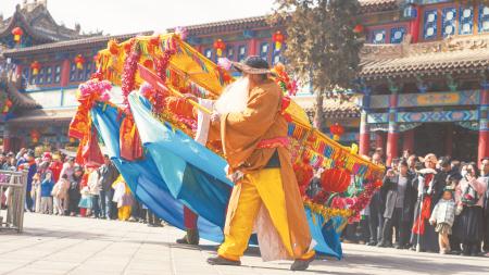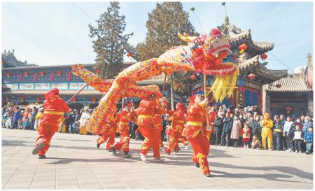 安定現(xiàn)龍山秧歌會(huì)在玉湖公園舞龍。 牛小棟 攝