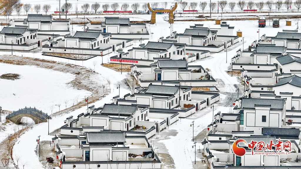 近日,甘肅省張掖市高臺(tái)縣迎來一場瑞雪,雪后的和美鄉(xiāng)村——弱水蒹葭鄉(xiāng)村建設(shè)示范點(diǎn)披上了銀裝,景色如詩如畫,讓人陶醉其中。