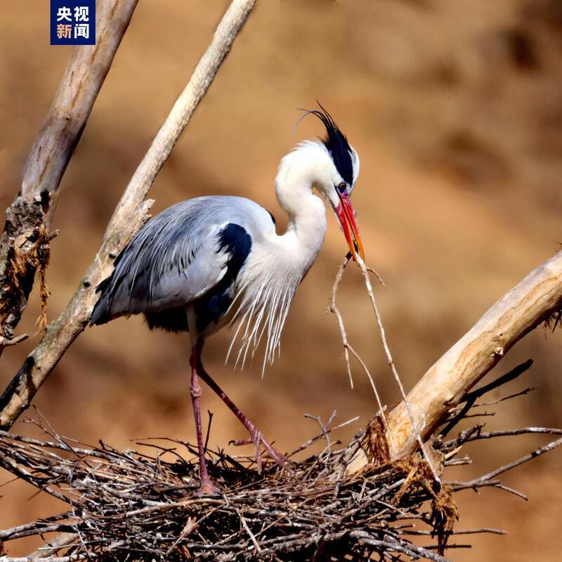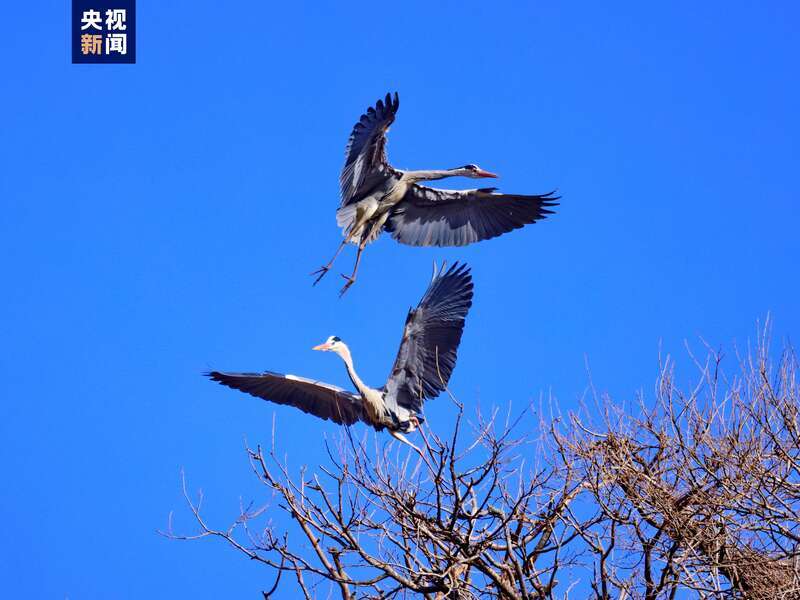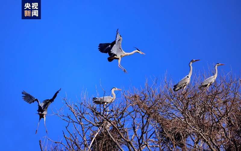 隨著氣溫回升,位于子午嶺腹地的甘肅省慶陽(yáng)市合水縣太白鎮(zhèn),有成群結(jié)隊(duì)的蒼鷺如約從南方飛來(lái)。它們或落在樹冠,偎依在一起,或維修著往年搭建好的巢穴,開啟新一輪的繁衍生息。子午嶺腹地是天然的生態(tài)林區(qū),近年來(lái),當(dāng)?shù)鼐C合實(shí)施固溝保塬、退耕還林、植樹造林等工程,森林覆蓋率達(dá)到69.82%,引來(lái)眾多珍稀鳥類繁衍生息。(總臺(tái)記者 焦?。?/p>